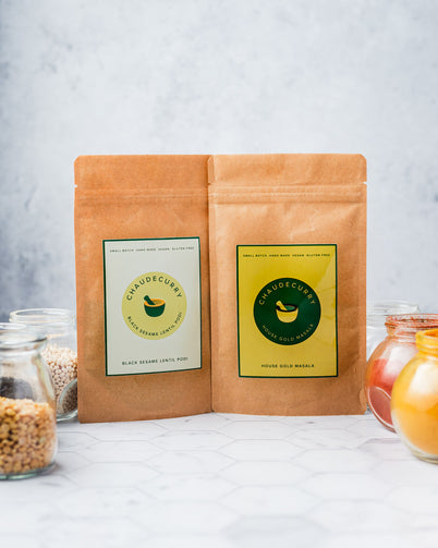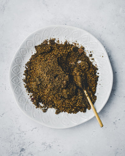 Black Sesame Lentil Podi is a South Indian version of the Duqqa. It is crunchy, spicy, and slightly sweet. Traditionally this blend is a condiment, mixed with oil. This would make a wonderful addition to your mezze platter or charcuterie board dipped in some olive oil. We also recommend topping it on your eggs, avocado, salad, or using it as a dry rub on meats.Our blend features lentils, black sesame, chilli, jaggery, and salt. Qty: 5